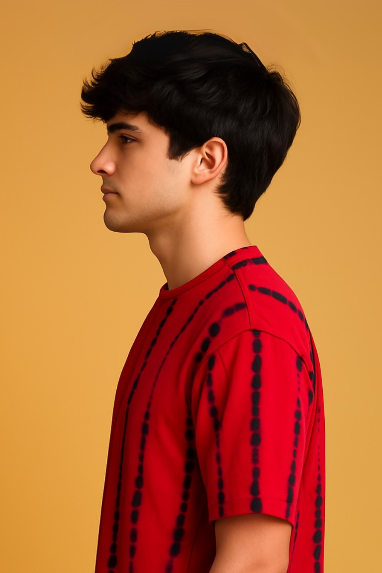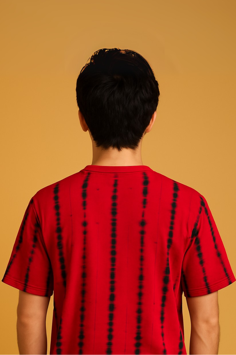 Step up your streetwear game with The Serving Crew’s Crimson Vertical Tie-Dye T-Shirt. This bold oversized tee features striking black vertical patterns on a rich red base, creating a unique and edgy look. Designed for unisex comfort and crafted from 100% premium cotton, it delivers softness, breathability, and lasting style.