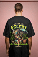 Step into effortless street style with the Why Not Just Relax? oversized drop shoulder graphic tee by Fukraapanti. Designed for comfort and attitude, this premium cotton t-shirt features a bold and vibrant back print of a laid-back character lounging under an umbrella, surrounded by lush greenery, radiating pure chill vibes.